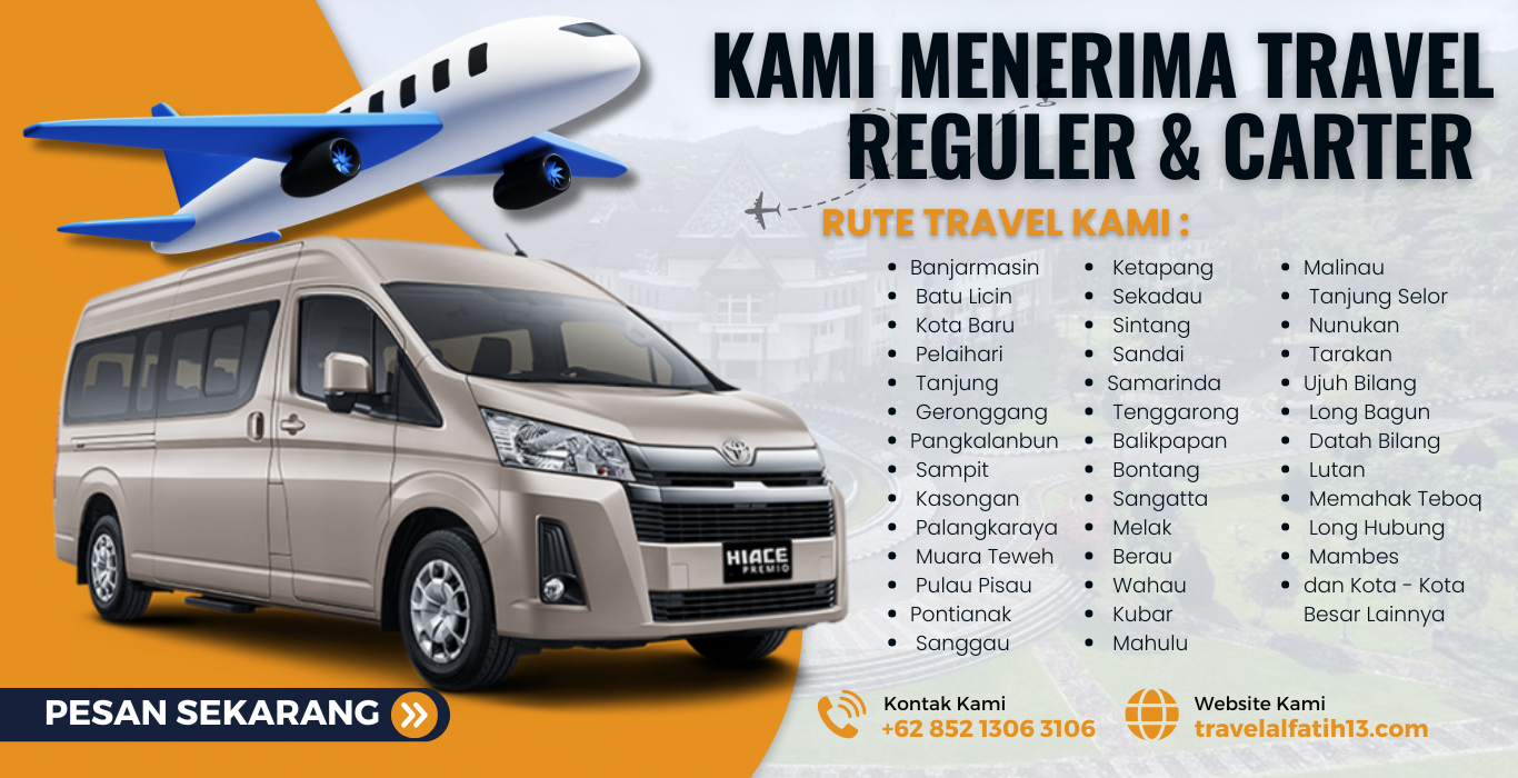 Komitmen AL FATIH adalah memberikan pelayanan perjalanan yang mengutamakan keamanan, kenyamanan, dan ketepatan waktu. Armada selalu dijaga dalam kondisi prima dan dikemudikan oleh driver berpengalaman yang memahami medan perjalanan Kalimantan. Proses pemesanan dibuat mudah melalui WhatsApp tanpa harus datang langsung ke kantor, sehingga lebih praktis dan efisien bagi pelanggan yang membutuhkan layanan travel terpercaya.